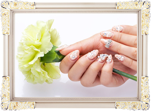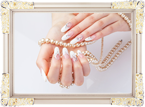 ファイルで爪の形を整えて、長さ出し、アート、ストーン、シール、キューティクルとトリートメントで仕上がります。